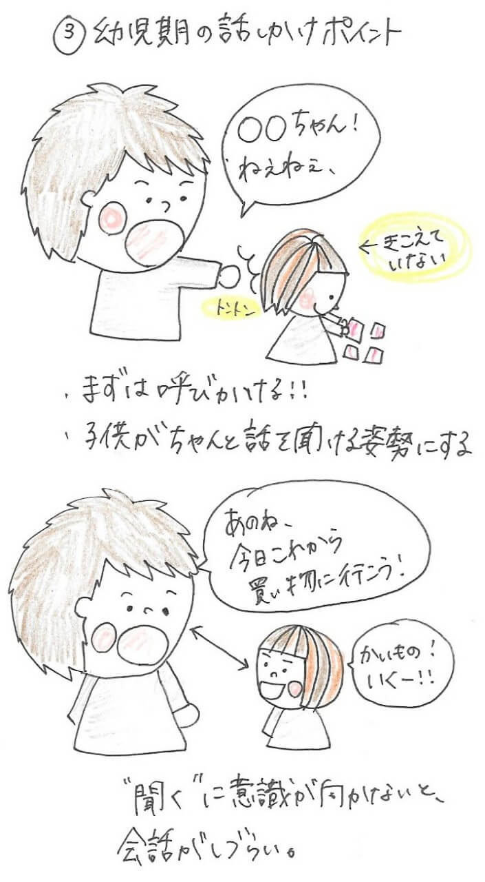 子供の顔をちゃんと見ながらはっきり自然に話すこと!