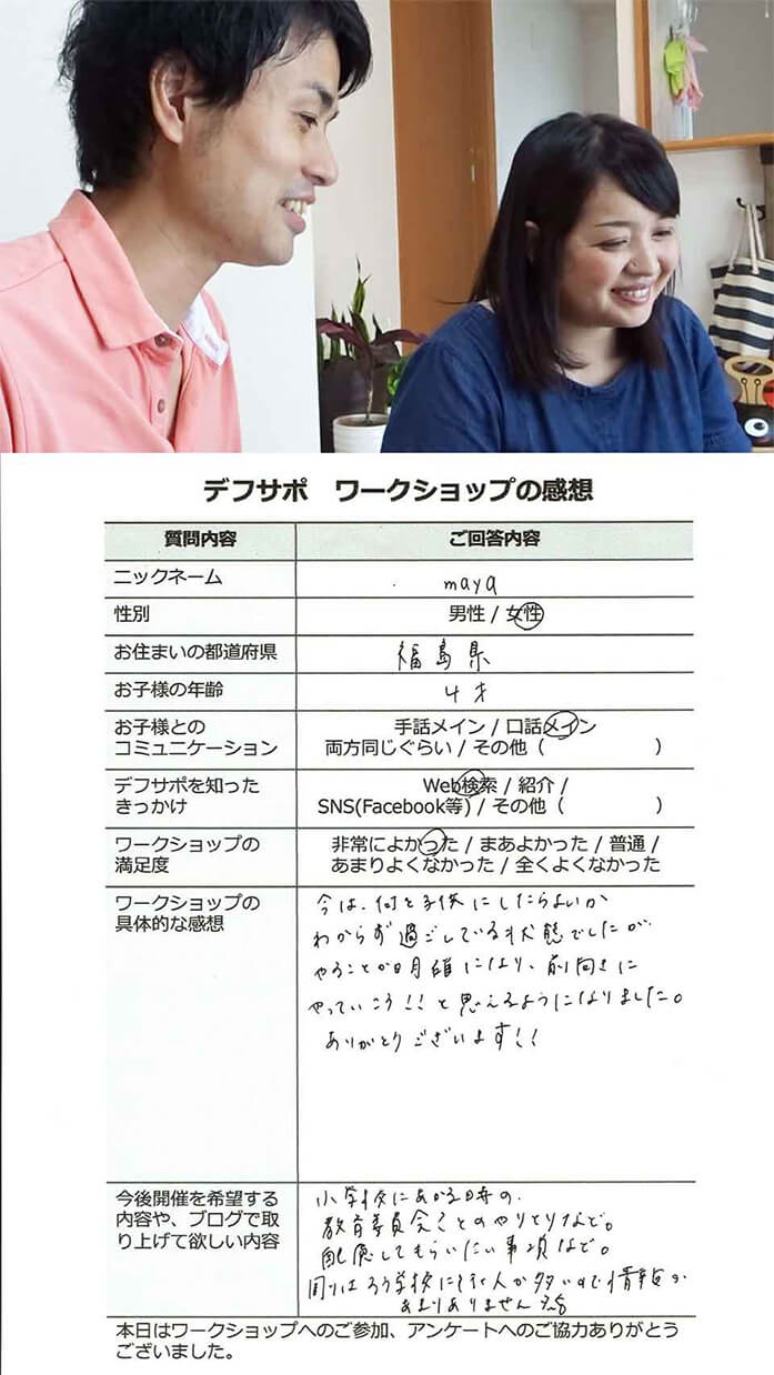 その他、各家庭による手話と口話の割合の選び方、絵本の読み聞かせ方法についてお話します。